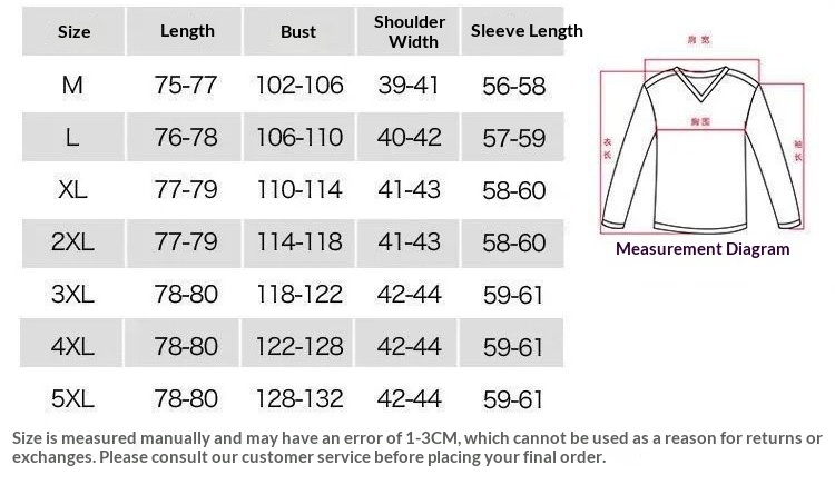 Sizes: M, L, XL, 2XL, 3XL, 4XL, 5XL